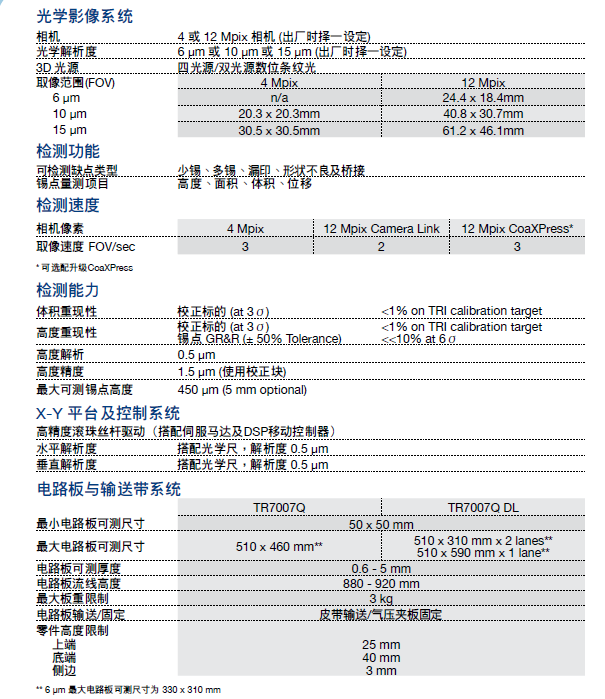且TRI创新的智能板弯补偿系统可弥补检查过程中的板弯。可选择双光源或四光源数位条纹投影检测,这是一款提供多种锡膏检测解决方案的产品,让您全面掌握高精度与高速度的优异效能